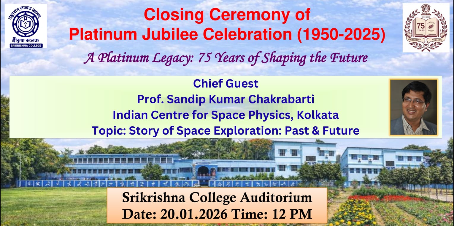 As the Principal of Srikrishna College, Bagula, I would like to share my thoughts and dreams on and about this institution. This college is based on the philosophies of continuous assessment and renovation. Read More »